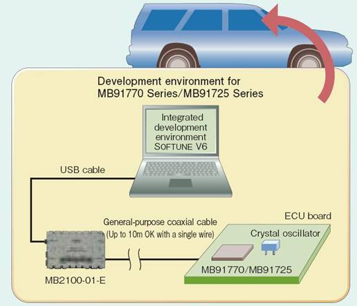 一般產(chǎn)品必須利用ICE主單元和驗證用評估芯片來進行系統(tǒng)檢驗,為了降低驗證的復(fù)雜度,我們?yōu)樾乱淮鶰CU產(chǎn)品提供芯片上(on-chip)的偵錯方式。它采用單線調(diào)試接口,可以實現(xiàn)汽車評估或一致性測試,并且能夠利用通用同軸電纜、在高達10米的范圍內(nèi)實現(xiàn)小型ICE主單元和目標(biāo)電路板之間的通信。這可以簡化按照常規(guī)難以實現(xiàn)的汽車評估。