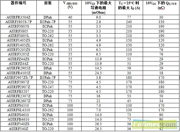 國際整流器公司 (International Rectifier,簡稱IR) 日前宣布拓展了針對低導通電阻(RDS(on))應用的汽車用功率 MOSFET 專用系列,包括車載電源及內燃機 (ICE) 、微型混合動力和全混合動力平臺上的重載應用。