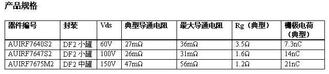 新推出的 AUIRF7640S2、AUIRF7647S2 和 AUIRF7675M2 器件,拓展了 IR 適用于汽車 D 類音頻系統的 DirectFET®2 功率 MOSFET 陣營,并利用低柵極電荷 (Qg) 作出優(yōu)化,來改善總諧波失真 (THD) 和提高效率,而低二極管反向恢復電荷 (Qrr) 則進一步改善了總諧波失真,降低了電磁干擾 (EMI) 。