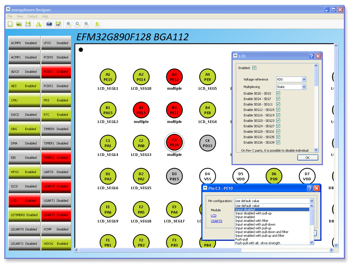 Energy Micro公司的CTO Øyvind Janbu說:“長久以來,工程師們已經(jīng)浪費了很多時間試圖破譯復(fù)雜的外設(shè)地圖,以確定引腳輸出的沖突所在。 EnergyAware Designer 克服了這個困難,簡化了MCU配置和文件,并讓工程師們專注于開發(fā)應(yīng)用程序。”