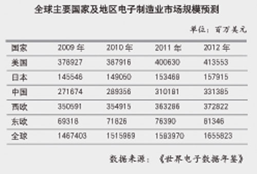 2010年是產業復蘇和市場擴張的一年,據統計,1月~5月規模以上電子信息制造業主要銷售產值增值30.6%,出口交貨值31.7%。我國電子信息產品的進出口額達到3677億美元,同比增長43.1%,占全國外貿進出口總額的33.4%。電子元件、電子器件、電子專用設備這三個行業出口增速明顯高于全行業平均水平。