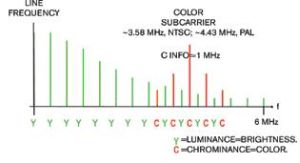 圖1:亮度信息和色度信息共享復合視頻信號的同一頻譜。
