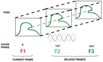 圖9:NTSC制式的典型幀序列展示了3D梳狀濾波技術。