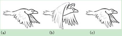 圖11:自適應3D梳狀濾波器依賴解碼器來正確檢測圖像移動。這是鳥舞動翅膀的正常順序-向下(a),向上(b),再向下(c)。