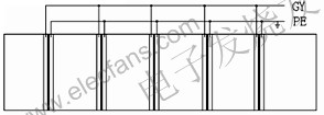 在注塑后的蓄電池池殼的隔板兩邊緊貼隔板分別放置兩塊厚銅板,其中一塊銅板接直流高壓,另一塊銅板接地線,在兩塊銅板之間加1.5萬伏~3萬伏直流高壓,通過檢測泄漏電流的大小來判斷池殼好壞,當池殼隔板有氣孔或有毛毗等缺陷時此處隔板變薄,承受高壓的能力差,空氣電離嚴重,泄漏電流比正常池殼明顯增大,當檢測到的泄漏電流大于設定泄漏電流時我們用聲光報警來表明此電池不合格。 (設定的泄漏電流值根據實際情況定)。以一只12V 6單格的小密鉛酸蓄電池為例,其池殼的高壓接線如圖1。