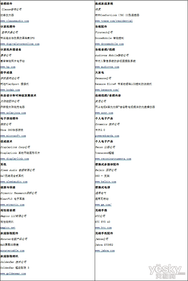 最佳創(chuàng)新設(shè)計(jì)與工程獎(jiǎng)名單公布 (CES2011)