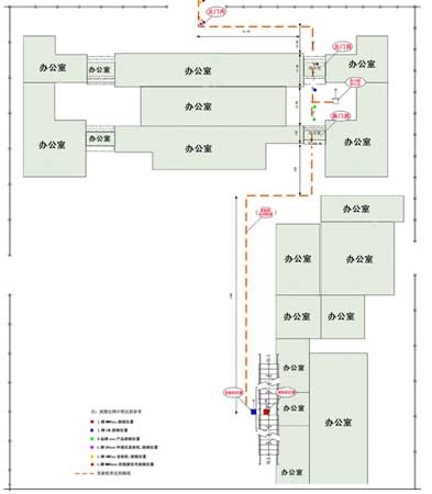 所走的線路如圖1所示,起點為放置接收機的位置,終點是北門洞。被測產品是:(1)L牌UH2xx(射頻功率100mW,200系列模擬射頻平臺,外接插式發射器),使用前端話筒S牌4xx動圈話筒,接收機為L牌R4xx型,使用200系列兼容接收模式及線路輸出(4dBu)端口。(2)L牌LMxx(射頻功率50mW,400系列數字耦合平臺),使用CountrymanBx話筒頭,接收機為L牌UCR4xx型,使用400系列數字耦合接收模式及線路輸出(4dBu)端口。