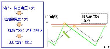 要解決這一問題,應不用峰值電流來控制LED電流,而須用LED電流的平均值來控制(平均電流控制)。