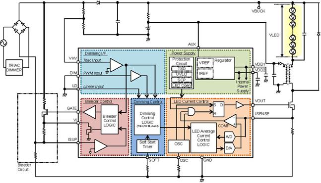 為使LED穩定地點亮、調光,需要使用LED驅動器IC,而且要求這種驅動器IC能與功率和調光方式等五花八門的電源相適應。