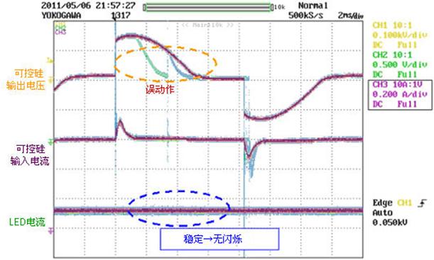 [圖7] 可控硅調光器誤動作時BD555AKFV的LED電流波形