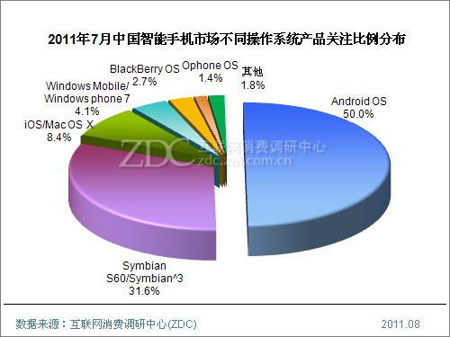 (圖) 2011年7月中國智能手機市場品牌關注比例分布[page]
