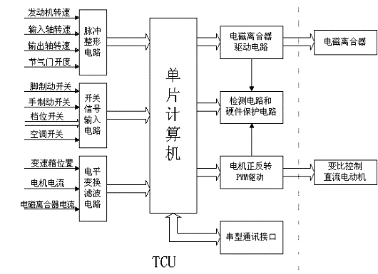 通訊接口的作用主要是觀測TCU的工作狀態,對檢測傳感器的故障分析以及傳感器資源的共享。