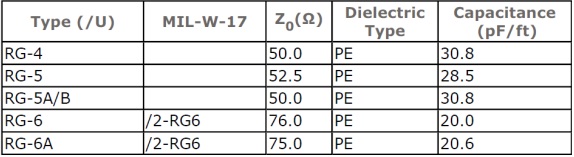 一般在測量高頻電路的時候,我們通常采用RF同軸線,比如常見的RG-58C,從直覺來看,50ohm的RF同軸線不會對測量引起太大的影響,可是如果從實際來思考,傳輸線可以看做是一系列LCRG組成的網絡,由于CL的存在,這個網絡必然存在一個工作頻率范圍,由于RG的存在,這個網絡必然存在損耗,所以傳輸線會對測試系統產生濾波器效應,也就是說傳輸線也有一個工作頻率范圍的問題,如果我們用網絡分析儀去測試一根RF同軸線比如RG-58C,在很寬的頻率范圍來掃描其S21,我們會發現這個同軸線是一個低通濾波器,從RF線材的非理想性來看,這個測量結果應該是意料之中的??梢栽O想,如果我們單純讓這根同軸線工作在遠離其低通濾波器corner-frequency很遠的地方,那么從RF匹配的角度來看,這個同軸線就不是一個50ohm或者75ohm匹配的同軸線,如果使用這根線,必然引起很大的反射損耗,此時就必須重新選擇其他RF線材。下面的表格就是一個RF同軸線的參數表格,可以看到每個feet長度時,其等效的電容大約是20~30pF,對于高頻而言,這個是比較大的電容,這就是為什么我們在進行RF測量時,必須選擇盡可能短的同軸線的原因。