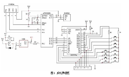 本系統(tǒng)采用AT89C2051為控制核心,PTC熱敏電阻對(duì)加熱區(qū)域進(jìn)行加熱,數(shù)字溫度計(jì)DS18B20實(shí)時(shí)采集溫度,由外設(shè)鍵盤(pán)設(shè)定所要加熱溫度值的上限和下限, 通過(guò)實(shí)時(shí)采集到的溫度值與設(shè)定溫度值的比較,確定是否達(dá)到所設(shè)定的溫度范圍,由AT89C2051控制多路繼電器實(shí)現(xiàn)對(duì)多片PTC熱敏電阻(一路繼電器控制一片PTC熱敏電阻)工作狀態(tài)的開(kāi)關(guān)控制,使加熱區(qū)域溫度維持在設(shè)定的溫度范圍內(nèi)。系統(tǒng)原理圖如圖1所示。