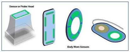對于圖1中所示的器件,若能在啟動器件或進行測量之前先了解器件與皮膚之間的接觸質量等相關信息,往往較為有利。這些器件包括需要緊靠皮膚的醫用探針、生物電位電極傳感器或者用于固定導管用管的外殼。為確定接觸條件,可以在注塑生產過程中將圖中綠色的幾個容性傳感器電極直接嵌入器件的塑料外殼。主機微控制器讀取容性傳感器控制器IC上的一些狀態寄存器,這些寄存器表示容性傳感器離皮膚有多近。隨后,主機微控制器上運行的基本檢測算法處理狀態寄存器信息,以確定各傳感器電極與皮膚的接觸是否適當。