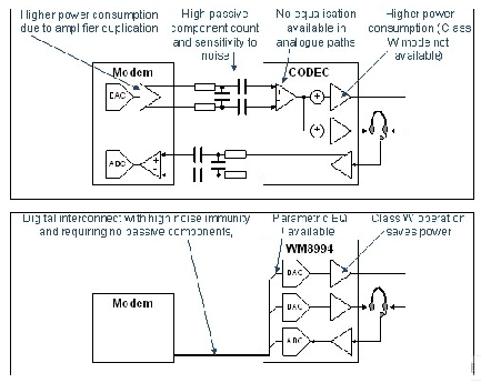 圖1:WM8994采用以應(yīng)用為中心的調(diào)制解調(diào)器架構(gòu)?! ?/p>
