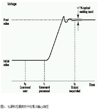 將電源供應器的輸出電壓設定變更為新值時,必須經歷幾個步驟,如圖3 所示。這些步驟所花的時間很有限。當電源供應器接收到指令時,必須加以處理,因此會有一段指令處理時間。接著,電源供應器的輸出會予以回應并變更成新的設定。它在某個穩定區段內達到終值所花的時間,即為輸出響應時間。1%的穩定區段對ECU 測試來說是合適的。特別需要注意的是下調設定時的輸出響應時間。許多電源供應器都必須依賴真實的DUT 負載來降低電壓,在負載較小的情況下,一些不具下調設定器的電源供應器可能需要花一秒左右的時間來達到終值。N6752A 電源供應器模組內建了一個下調設定器,能夠加快下調設定的速度,而不受負載的影響。在ECU 測試中,上調與下調設定都必須夠快才行?! ?br />