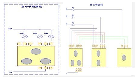 • 結合具體的應用系統給出單路、雙路和三路開關的安裝方法