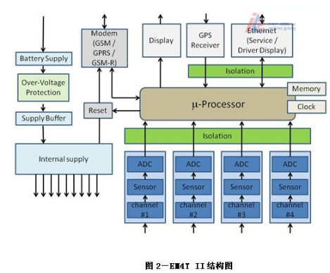 可以利用串行接口從EM4T II讀取數據。從EM4T II內的數據處理系統中將數據提取出來然后通過通信網絡傳輸到地面系統。EM4T II可以配置第2個接口,確保系統符合任何鐵路運營商的特定要求。