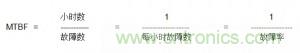 想要將一個部件的材料清單(BOM)與另一個部件的材料清單進行比較會怎么樣呢?能不能將每個元件的MTBF簡單地加在一起,來確定總體可靠性呢?可惜的是:不可以。這是因為MTBF代表的是出現故障的小時數,按照加法計算是不起作用的。然而,故障率,一個代表每小時發生故障的次數,是可以相加。慶幸的是將MTBF轉換成故障率僅是一個很簡單分數關系。以下是公式: