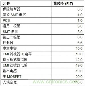 表2顯示出更多的元件會導致更高的故障率,而增加一個電解電容會降低可靠性。