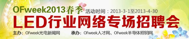 導(dǎo)讀:新年招聘旺季序幕已經(jīng)拉開,您是否正在茫茫人海大潮中苦尋理想職位?或意欲辭職蠢蠢欲動(dòng)?新年伊始,OFweek為你推薦LED行業(yè)的好工作!3月1號(hào)~4月30日,由中國(guó)高科技行業(yè)綜合門戶網(wǎng)站-OFweek主辦,OFweek人才網(wǎng)、OFweek半導(dǎo)體照明網(wǎng)承辦的“OFweek2013春季LED行業(yè)網(wǎng)絡(luò)專場(chǎng)招聘會(huì)”日前啟動(dòng)。