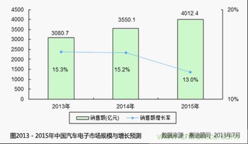 據賽迪顧問相關調查數據顯示,去年,中國汽車電子市場規模達到2671.8億元,預計到2015年,中國$汽車電子市場規模將超過4000億元。智能化的趨勢從手機等電子產品擴散到汽車領域,人車交互日趨人性化,汽車成為商業數據的重要入口。智能汽車將沿車載娛樂、輔助駕駛、人車交互、智能交通、車聯網、自動駕駛的路徑發展。技術的逐漸成熟以及市場需求,使中國電子行業發展迅速。