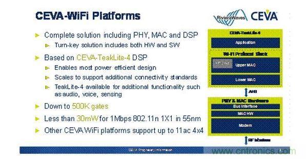 翟驍曙特別強調了他們去年收購的RivieraWaves,“他們具有最先進的包括4x4 802.11n wifi與藍牙解決方案。”他強調。