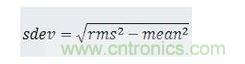 rms值現(xiàn)在變高了,因為包含了偏移量。知道均值和rms值后就可以計算sdev值了。
