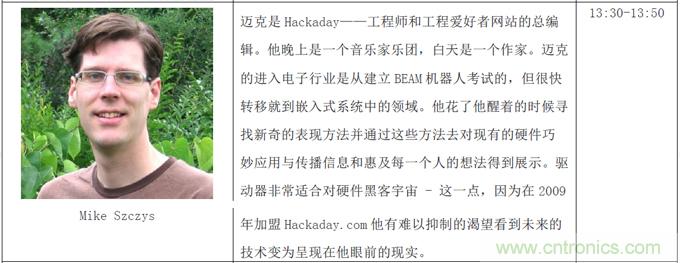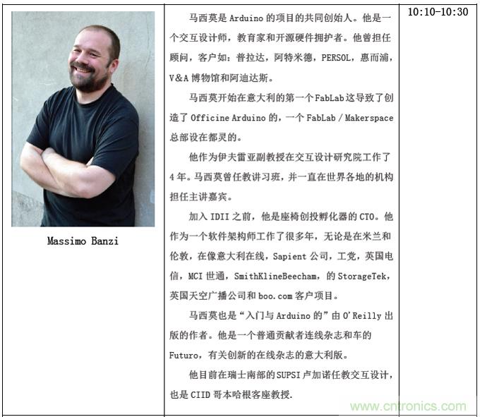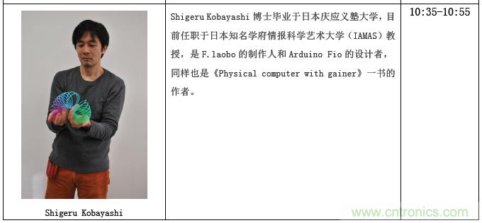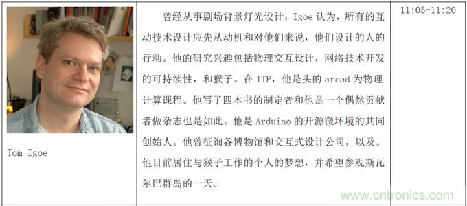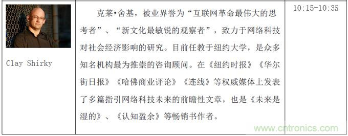 本次創(chuàng)客論壇三天共三個(gè)主題:?jiǎn)⒚蓜?chuàng)新、創(chuàng)客本質(zhì)和協(xié)同合作,將邀請(qǐng)到包括暢銷書《失控》作者Kevin Kelly、克萊舍基、Arduino開源電子原型開發(fā)平臺(tái)聯(lián)合創(chuàng)始人Massimo Banzi、第一個(gè)生物創(chuàng)客空間BioCurious聯(lián)合創(chuàng)始人Tito Jankonski、F.laobo的制作人和ArduinoFio的設(shè)計(jì)者Shigeru Kobayashi、Intel最小的實(shí)習(xí)生Joey Hudy和為麻省理工研究生授課的14歲電子神童QuinEtnyre等等共50余位來(lái)自全世界各地的創(chuàng)新領(lǐng)域領(lǐng)軍人物。