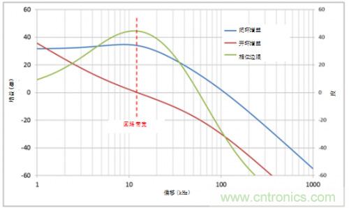 如果設計目標為100kHz回路帶寬,45度相位邊限,當伽馬值限制為1時,您最多只能得到79kHz的回路帶寬。然而,如果您能接受更高的伽馬值,如伽馬值等于8,則可以實現(xiàn)設計目標。此時,回路帶寬為96.6kHz,相位邊限為43.4度。