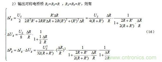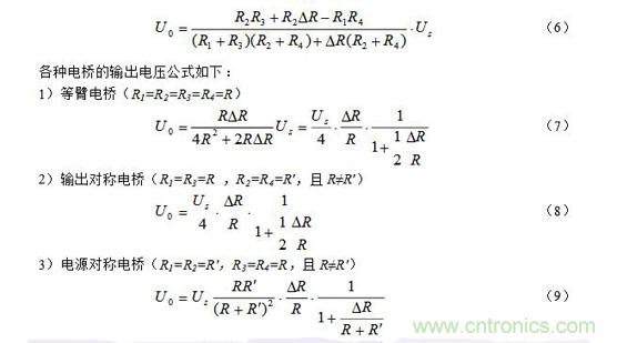 一般來說,等臂電橋和輸出對(duì)稱電橋的輸出電壓比電源對(duì)稱電橋高,因此靈敏度也高,但電源對(duì)稱電橋的測(cè)量范圍大,可以通過選擇R和R′ 來擴(kuò)大測(cè)量范圍,R和R′ 差距愈大,測(cè)量范圍也愈大。