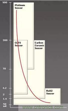有些令人驚訝的是,一些在“普通”溫度下的常用傳感器甚至可以在較寬的個位數區間內工作(圖1),其中包括RTD(使用鉑或銠鐵)、鍺,甚至經典的碳基電阻器。然而,這些裝置的強磁場會引起幾K的傳感器誤差。研究現狀是,對低K傳感的需求非常大,以至于這些傳感器是許多供應商提供的標準目錄產品(想一想,這是相當驚人的)。