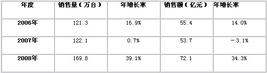 表1 2006-2008年中國數碼攝像機市場銷售情況