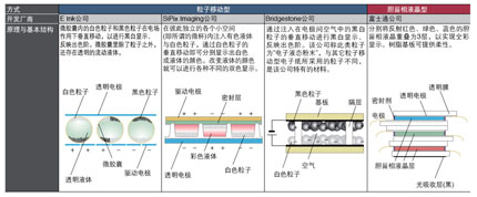 表1 已進入實用化階段的主要電子紙技術的比較