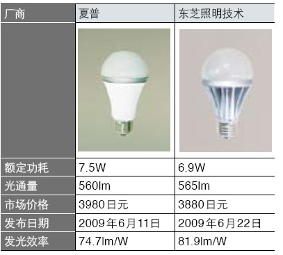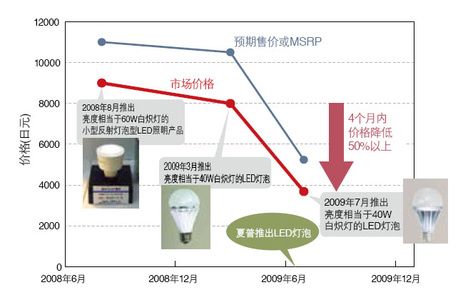 在LED照明市場上,其它日本公司也緊隨其后。2009年7月,Ecorica大幅下調了公司于同年4月推出的LED燈泡的價格,從原先的7200日元下調到3780日元;IRISOHYAMA公司也推出了售價3980日元的產品。NEC照明于2009年8月發布了一款LED燈泡,新聞稿中稱其價格具有較強的市場競爭力。10月下旬,松下公司也推出10款與競爭產品同等價位的EVERLEDS系列LED燈泡產品。