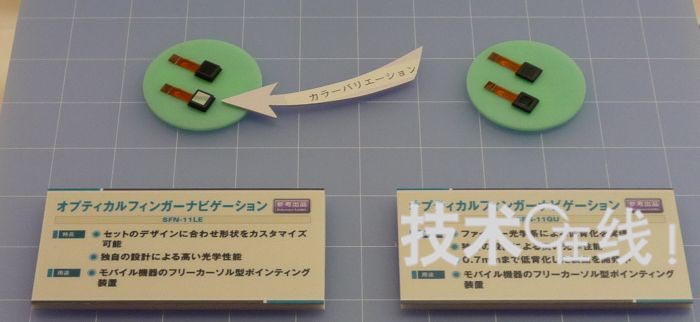 三美電機開發出了厚度僅為2mm的光學式輸入傳感器模塊“SFN-11GU”。設想用于用一根拇指在手機畫面上進行操作的用途。解說員表示,“如果是觸摸面板的話,大多數情況下需要一手拿著手機,用另一只手的手指碰觸畫面進行操作,而有些顧客希望可以只用單手進行操作”。該產品已經用于便攜終端產品中。