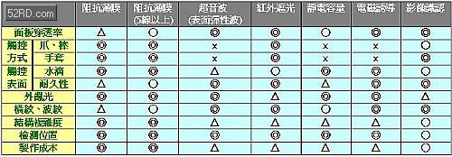 表1是各種觸控面板結構特性比較一覽。接著將依序介紹觸控面板的結構性特徵與動作上的優缺點。