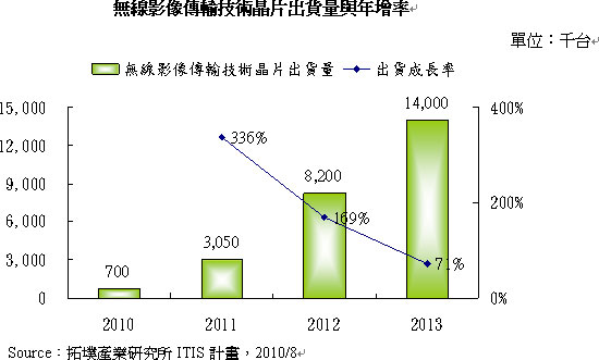 - 2010年無線影像傳輸技術晶片出貨量為70萬組