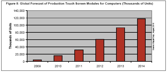 - 2010年用于電腦的觸摸屏模組產(chǎn)量1580萬(wàn)個(gè)