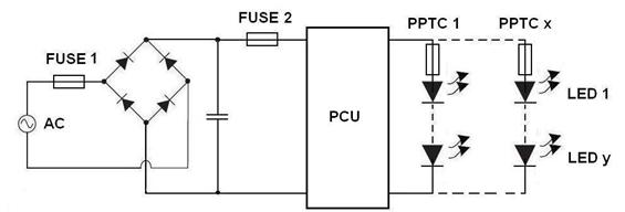 好利來(中國(guó))電子科技股份有限公司針對(duì)LED照明電路提供的保護(hù)元器件和方案,使LED照明燈具具有更高的可靠性和更長(zhǎng)的壽命。如圖: