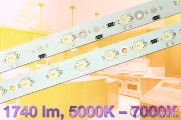 日前,Vishay Intertechnology, Inc.宣布,推出3款安裝了6個或12個高亮度LED的冷白光LED模塊--- VLPC0601A2、VLPC1201A2J、VLPC1201A2。VLPC0601A2在一個240mmx14mm的PCB板上裝了6個LED,光通量為870流明;VLPC1201A2J在240mx14mm的PCB板上安裝了12個LED,光通量為1740流明;把VLPC1201A2J簡單地分成兩半,每一半就是一個VLPC1201A2模塊,每個模塊的尺寸是120mmx14mm,裝有6個LED,光通量為870流明。這些模塊使設(shè)計者能夠為其應(yīng)用選擇最合適的PCB和光強。