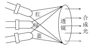 通過控制電路對三基色發光LED 的亮度進行調節,其通過透鏡后的合成光的顏色和亮度均將可調。