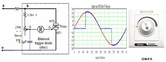 改變可變電阻的分壓比就可以改變其導通角,從而實現改變其有效值的目的。通常這個電位器帶一個開關,接在n的輸入端,用于開關燈。除了可控硅以外,還有晶體管后沿調光技術等等,因為它們的基本問題是相同的,就不在此介紹了。