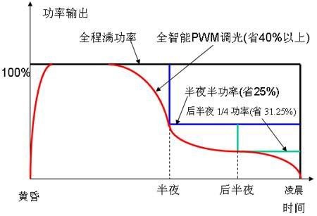 一般來說,路燈到半夜以后就沒有什么用處了,所以通常的做法是12點以后關燈或者開一半亮度。但是最合理的做法是根據交通流量來控制路燈的亮度,甚至是完全自適應地控制亮度。圖10就是根據當地交通流量的統計值來調節路燈亮度的一個例子。