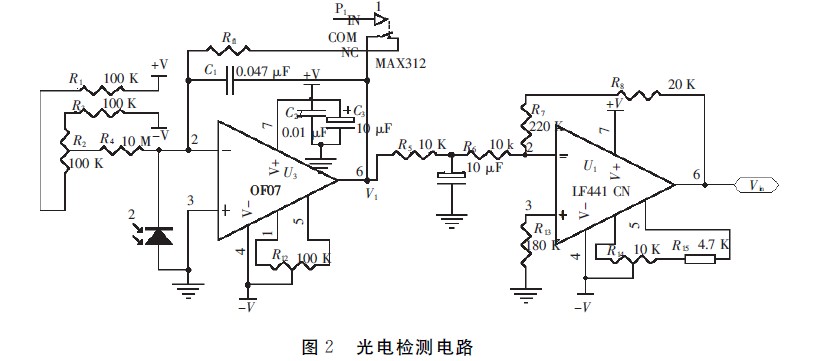 本設計中亮度測量范圍為1×10-3~200×103 cd/m2,為6個數量級的跳變,單個放大器放大倍數不能滿足要求,因此需要量程切換。