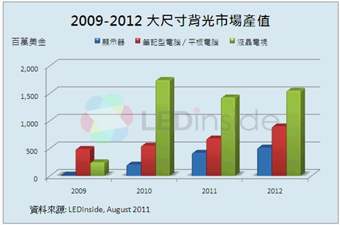 2011全年LED電視背光產值相較2010年衰退