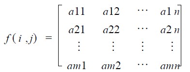 假設該數組的元素為:aij , 表示某矩形區域單位面積的照度值。并假設該數組為: m ×n (即m行n 列) 。f ( i , j) 稱為照度矩陣: