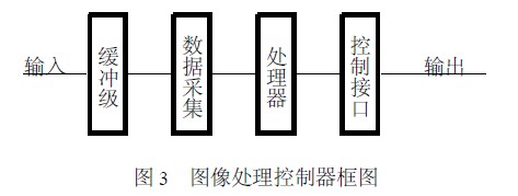 CCD 傳感器將某一區域的照度值傳送給圖像處理控制器, 控制器將獲取的數據進行運算。即計算區域的平均照度, 根據使用要求判別某象素值或某局部區域象素平均值是否在要求的域值內, 如果是在要求的域值內, 則認為照度合適;反之, 說明照度過大或過小。控制器根據需要控制執行機構進行調光, 達到合適的照度要求為止。判斷是否有人走動的方法是:將過道(人走動所經過的) 區域的圖像分割出來, 該區域的象素值在沒有人走動時基本不變或變化很小。當有人走動時, 該區域的象素值變化較大。假設t0 時刻沒有人走動時, 該區域象素值分布為f t0 ( x , y) , 經過δt (如:1 S ) 時間后,該區域的象素值分布為f t1 ( x , y) , 計算差值:δf( x , y) = f t1 ( x , y) - f t0 ( x , y) 。如果δf ( x ,y) 內各象素值的絕對值之和較大, 可以認為是有人在走動;如果δf ( x , y) 內各象素值的絕對值之和較小或為零時, 則可認為沒有人走動。從而控制燈光的有無。圖像處理控制器的原理框圖如圖3 所示。