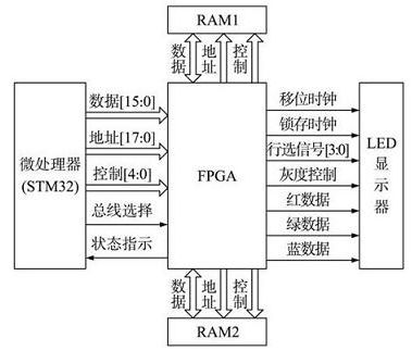 LED顯示屏是利用LED點(diǎn)陣模塊或像素單元組成的一種現(xiàn)代平面顯示屏幕,具有發(fā)光效率高、使用壽命長、視角范圍大、色彩豐富以及對(duì)室內(nèi)外環(huán)境適應(yīng)能力強(qiáng)等優(yōu)點(diǎn)。20世紀(jì)80年代后期,它在全世界迅速發(fā)展起來,并很快成為大屏幕平板顯示的代表性主流產(chǎn)品;近年來,隨著藍(lán)色LED產(chǎn)品價(jià)格的快速下降,全彩色LED顯示屏的價(jià)格逐步降低,市場(chǎng)需求急劇增長,應(yīng)用日益普遍。目前的LED顯示屏控制系統(tǒng)多采用ARM處理器來完成整個(gè)系統(tǒng)的功能,這種控制系統(tǒng)在數(shù)據(jù)處理速度上存在很大的局限,影響顯示效果的連續(xù)性。基于此,在分析了STM32微處理器總線結(jié)構(gòu)特點(diǎn)的基礎(chǔ)上,提出了STM32+FPGA的控制系統(tǒng)方案,該方案充分了利用STM32微處理器的靈活的儲(chǔ)器控制技術(shù)和可編程邏輯器件的靈活性,提高了系統(tǒng)數(shù)據(jù)處理的速度,而且簡(jiǎn)化了電路結(jié)構(gòu),方便調(diào)試。